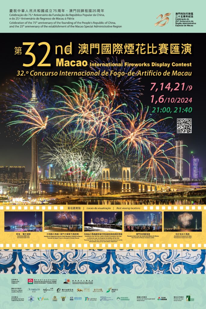本屆澳門國際煙花比賽匯演將分別於9月7、14、21日、10月1及6日晚上9時與9時40分在旅遊塔對出海面盛大舉行。旅遊局率先推介五個最佳煙花觀賞點:澳門孫逸仙大馬路觀音蓮花苑至觀音像海濱休憩區、澳門科學館海堤、沙格斯大馬路(澳門文華東方酒店側)、南灣・雅文湖畔及氹仔海洋大馬路。歡迎居民及旅客一同參與,共襄旅遊盛事,同賀「雙慶」。