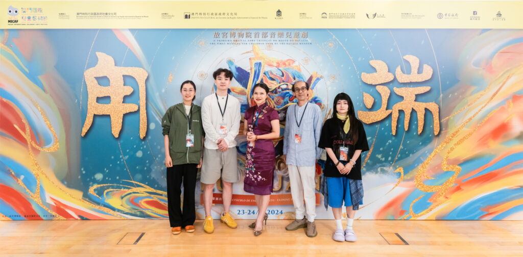 故宮博物院首部兒童音樂劇《甪端》主創團隊從故宮博物院186萬餘件(套)藏品中提煉角色原型,以故宮瑞獸「甪端」為基礎,歷時三年打造,運用文物擬人化的表現手法和豐富的舞台呈現,今夏首次亮相澳門,並作為首屆澳門國際兒童藝術節閉幕演出。《甪端》故事講述充滿好奇心的甪端想去發掘更多世界上的新奇事,而故宮宮廷歷史部老高的孫子高小端,只願接受線上短影片帶來的碎片化資訊,兩個「孩子」因而在紫禁城展開一場古典文化與當代潮流的思辨。主創團隊精妙融合戲劇藝術、傳統文化和現代科技,以AR全息投影技術實現「讓文物活起來」,帶領觀眾參與栩栩如生的故宮探索之旅,引導孩子感受中國傳統文化魅力。