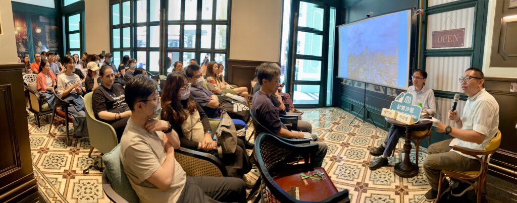 「記憶沙龍」8月公眾講座在開放報名後不足24小時已額滿,本次活動獲得新中央酒店的支持,在車水馬龍的新馬路旁「沉浸式」了解新馬路的前世今生,講座期間多位聽眾積極提問,氣氛熱絡。講座後設有導賞活動,讓讀者遊走地面層的「百年歷史穿越廊」和到天台的「歷史城區觀光長廊」,以更生動和直觀了解新馬路和新中央酒店的歷史和變遷,並從高處俯瞰新馬路街區的現狀。