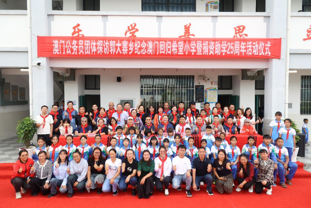 訪問團一行赴郭大寨鄉開展紀念澳門回歸希望小學的助學捐贈及探訪活動,一行懷揣著對內地助學興教的深情厚誼,跨越千山萬水,前往雲南省郭大寨鄉,開展了一場意義非凡的愛心之旅。團長官世海表示此次訪問恰逢國慶75周年及澳門回歸祖國25周年,尤其是疫情後首次重返郭大寨鄉紀念澳門回歸希望學校意義非凡,活動圓滿成功。