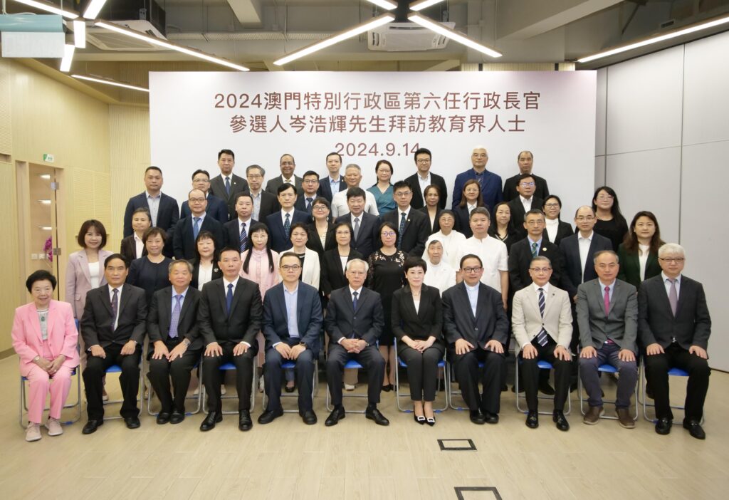 【本報訊】於9月14日上午10時30分,第六任行政長官參選人岑浩輝在代理人李煥江、競選辦公室副主任陳家良等陪同下,於中建商業大廈會見澳門中華教育會、澳門天主教學校聯會、澳門高等教育發展促進會、澳門公職教育協會一行代表,進行了交流及聽取意見。