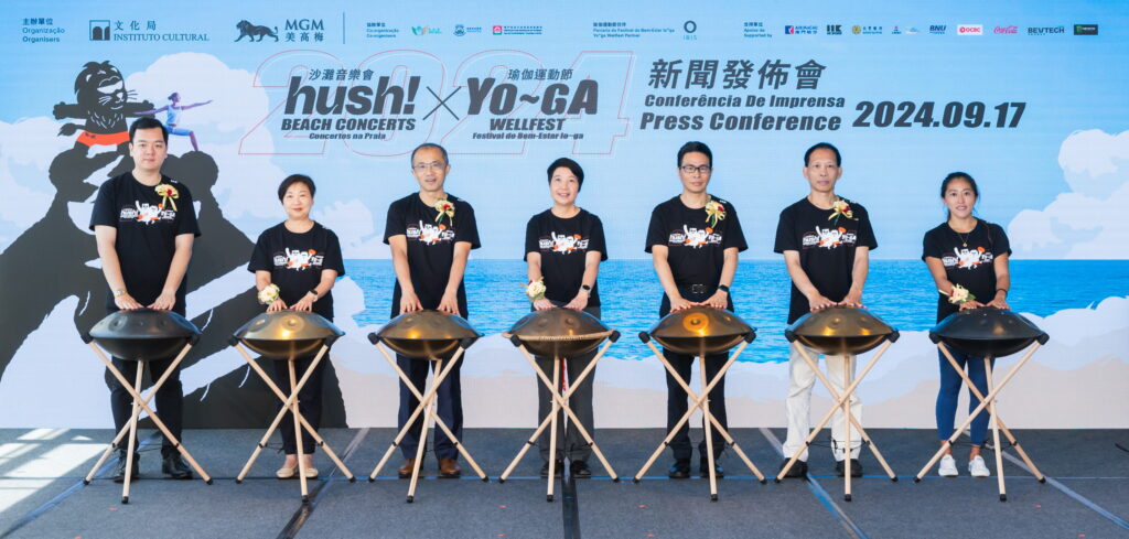 「hush!沙灘音樂會 x Yo~ga 瑜伽運動節2024」新聞發佈會於昨日上午在澳門美高梅維天閣舉行,文化局局長梁惠敏、美高梅中國控股有限公司總裁及執行董事馮小峰、旅遊局代局長程衛東、市政署文康及公民教育廳廳長高佩珊、海事及水務局海事活動廳廳長黃文濤等主禮,文化局副局長鄭繼明及美高梅品牌策劃高級副總裁廖頴琦等出席。會上邀請本澳林澤誠爵士樂隊及thetiredeyes樂隊與水上瑜伽導師 Vicky Yang及 Victor Chau 進行聯乘演出。