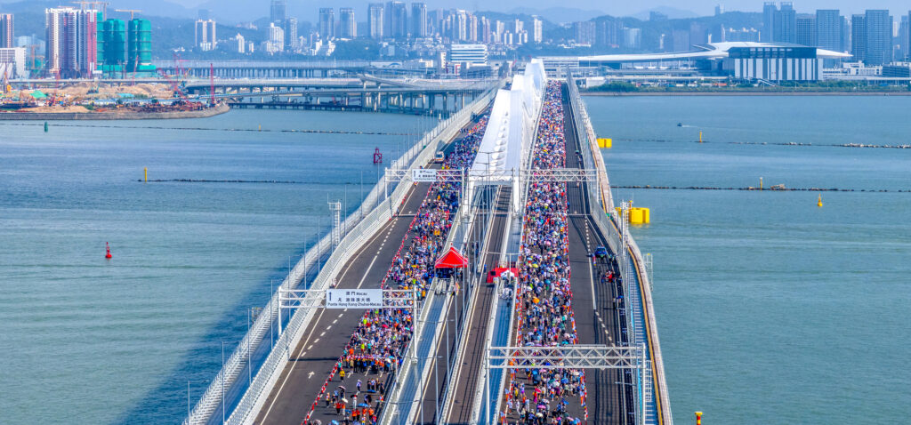 【本報訊】為熱烈慶祝中華人民共和國成立75周年及澳門特別行政區成立25周年,體育局昨日上午8時在澳門大橋開通前舉行「齊賀澳門大橋開通健步行」,吸引約21,000市民參與,由澳門大橋連接氹仔北安引橋處出發,步行至澳門大橋接近A區引橋的位置再折返至氹仔北安起點,全程約6公里。澳門特別行政區行政長官賀一誠等嘉賓主持活動起步儀式,場面歡欣熱鬧。