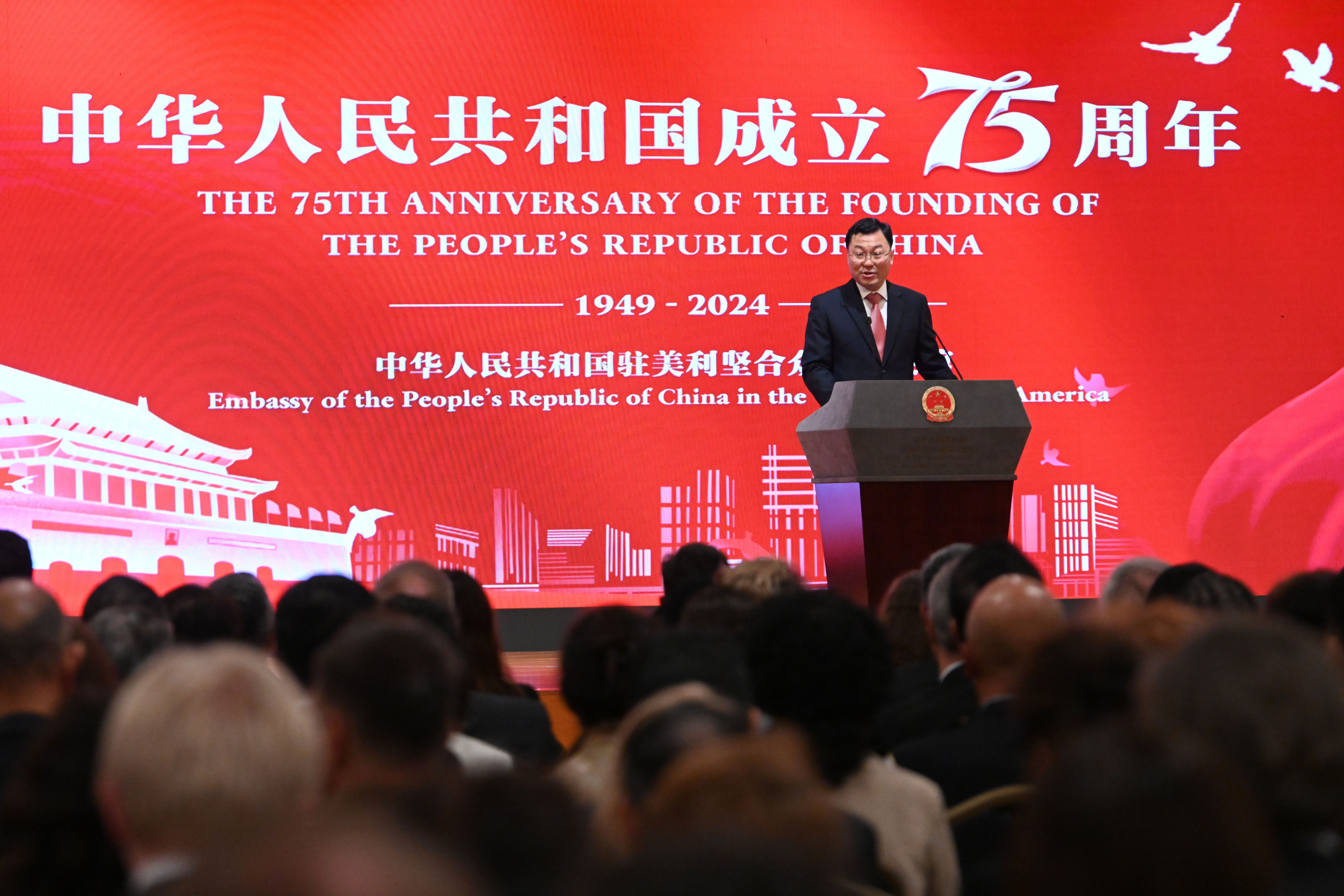 當晚,中國駐美國大使館舉行慶祝中華人民共和國成立75周年招待會。謝鋒在發表致辭時指出,堅持相互尊重,就要做伙伴,不要當對手。堅持和平共處,就要守底線,不要開倒車。堅持合作共贏,就要謀雙贏,不要搞零和。