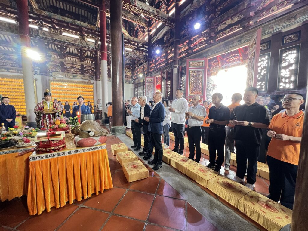 祈福儀式於昨日上午十時半舉行,澳門中華媽祖基金會主席顏延齡、副主席陳明金連同馬六甲晉江會館主席蘇德招主禮及率領澳門中華媽祖基金會主席董事宋碧琪、顏奕恆、李良汪、吳聯盟、陳明確、顏康齡、顏奕真、顏奕萍、許文曲、吳錫琛、蔡宗生、吳三明、顏奕賢,以及莊華麗、李少群、陳遠培、黃琪華、許永富、顏奕嘉、陳輝育、陳碧瑤等負責人出席。顏延齡、陳明金、蘇德招等分別行三獻之禮,眾人虔誠敬香,全體三跪九叩,祈願媽祖庇佑澳門百業興旺,政通人和,國泰民安,澳門居民安居樂業。