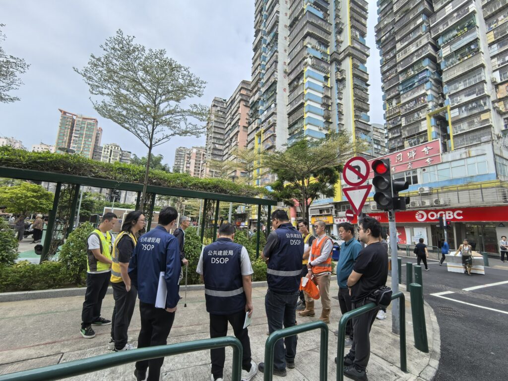 由於夾心房屋工程範圍毗鄰區內樓齡較大的樓宇,為確保施工過程中周邊建築物的安全,本局已聘請第三方機構對周邊樓宇及道路進行全面監測,已展開前期樓宇狀況勘察工作,包括對鄰近的樓宇進行3D雷射掃瞄、外牆表面狀況拍攝記錄以及安裝樓宇沉降、振動和傾斜度的監測設備等。項目的基礎及地庫工程將於近日進行工程委託,並隨即圍敝工程範圍及動工,臨時休憩區將停止使用。