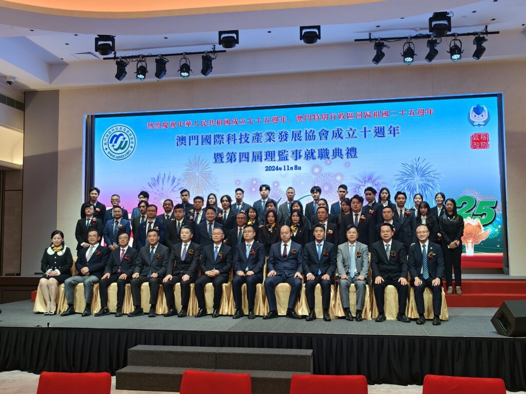 【本報訊】澳門國際科技產業發展協會慶祝新中國成立75周年、澳門回歸祖國25周年、該會成立十周年暨第四屆理監事就職典禮晚宴盛典,昨晚七時假澳門旅遊塔三樓囍宴廳舉行。科產協會長李彩紅表示,未來該會將繼續弘揚愛國愛澳精神,緊貼國家步伐,以更加飽滿的熱情、更加堅定的信念、更加務實的作風,共同書寫澳門國際科技產業發展的新篇章!為澳門的科技創新與產業升級貢獻智慧和力量。