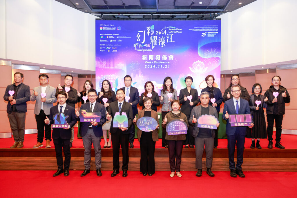 「2024幻彩耀濠江」新聞發佈會於昨日舉行,旅遊局局長文綺華、副局長許耀明、各協辦單位和領銜合作夥伴的代表及部份參與設計的藝術家出席。