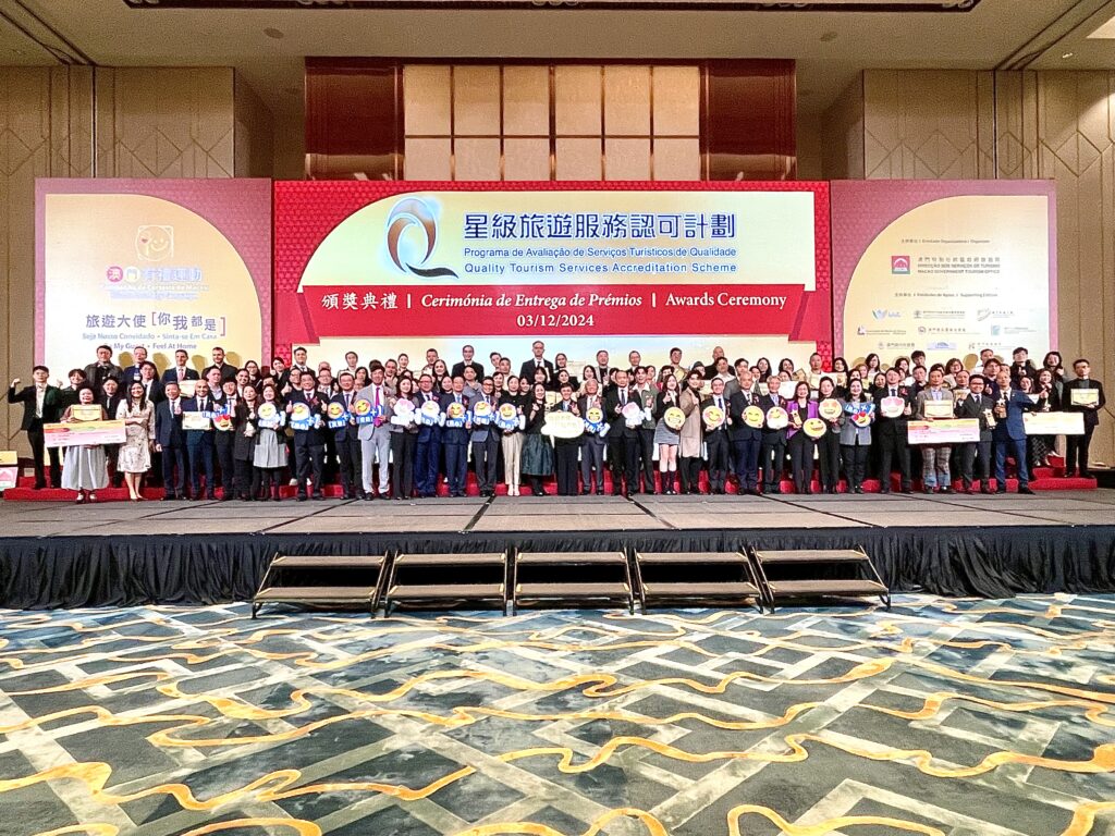 【本報訊】旅遊局昨日舉辦2024年度「星級旅遊服務認可計劃」餐飲及旅行社界別的頒獎典禮,嘉許本年度新參加或再次競逐的獲獎餐飲及旅行社商戶。今年獲「星級旅遊服務商戶獎」的餐飲界別共有312間,旅行社界別有44間,鼓勵澳門業界提供優質旅遊服務,共建有禮優秀旅遊目的地。