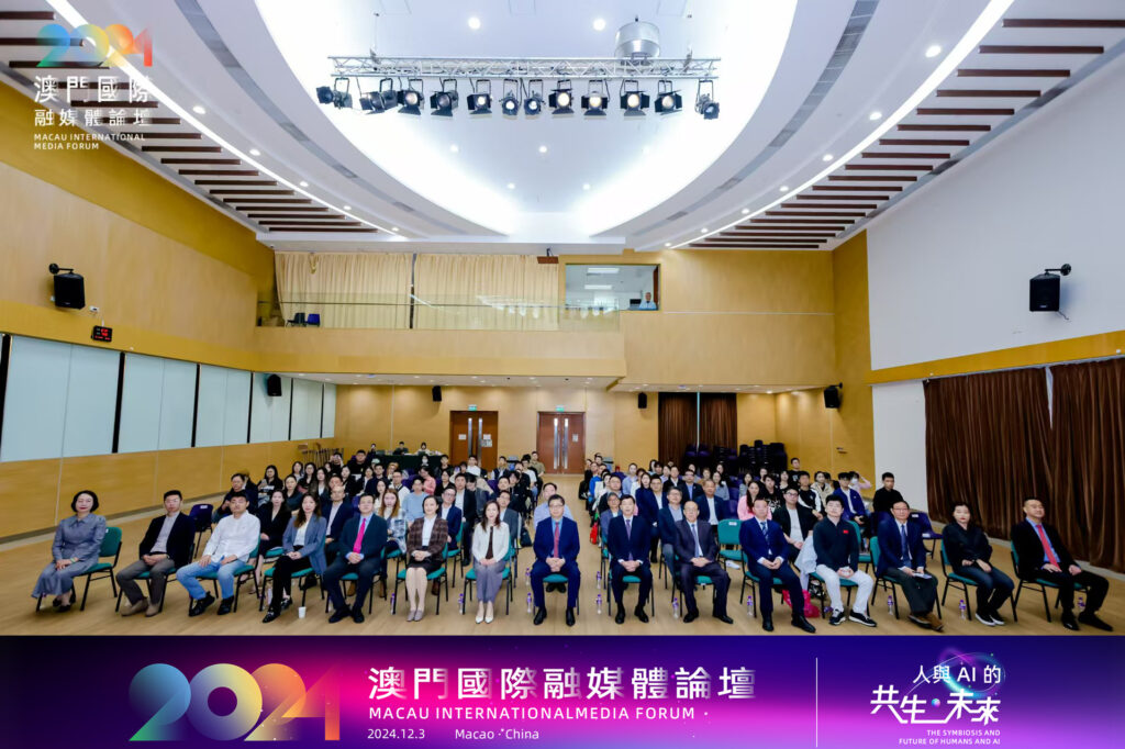 廣東省政協委員、澳門新媒體聯盟主席朱海生致歡迎辭時表示,論壇旨聚焦融媒體和AI技術,深入探討如何通過AI賦能澳門的多元經濟發展和人才培養,助力澳門在國際舞台上發揮更大的橋樑作用,進一步傳播中國故事。