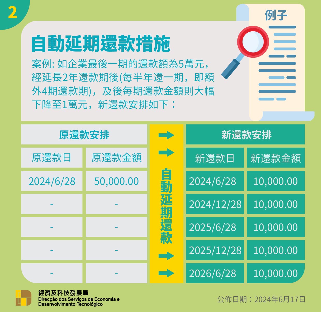 獲安排自動延長還款期的企業,可透過經科局網站查詢最新的還款狀況。如對自動延長還款期措施有任何疑問,歡迎於辦公時間透過下列途徑向經科局查詢: