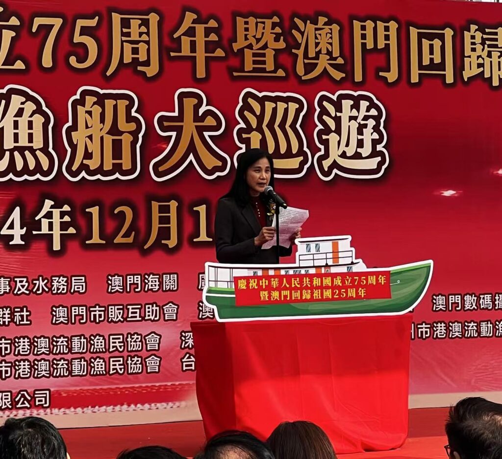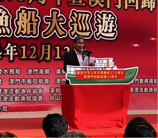 澳門漁民互助會理事長陳明金在開幕式上表示,自從1999年回歸以來,在「一國兩制」的方針指引下,澳門經濟持續繁榮、社會穩定和諧,民生不斷改善。他強調,未來將繼續發揚愛國愛澳精神,團結漁民朋友,全力支持特區政府依法施政及正確改革,以促進「一國兩制」的長期穩定發展。