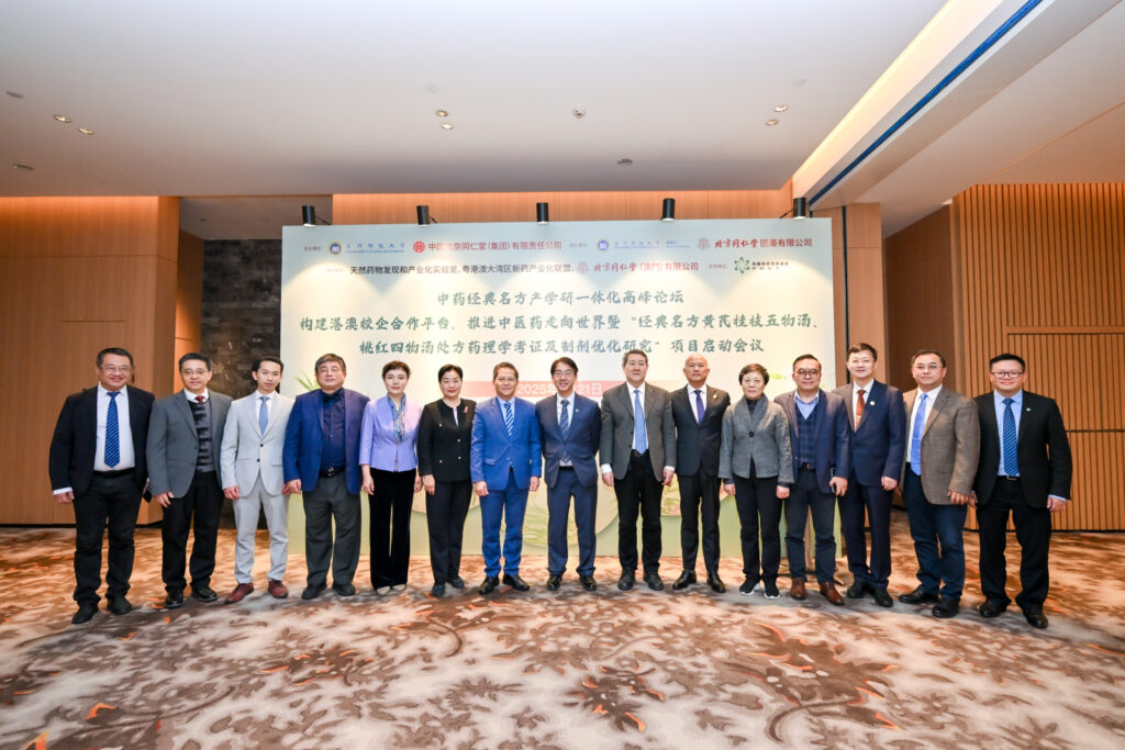 【本報訊】2025年1月21日下午,由澳門科技大學與中國北京同仁堂(集團)有限責任公司(以下簡稱「北京同仁堂集團」)聯合舉辦的《中藥經典名方產學研一體化高峰論壇》暨《經典名方黃芪桂枝五物湯、桃紅四物湯藥理學考證及製劑優化研究》項目啟動會議於橫琴凱悅酒店隆重舉行。本次會議聚焦中醫藥經典名方的產業化發展、學術研究和國際化進程。