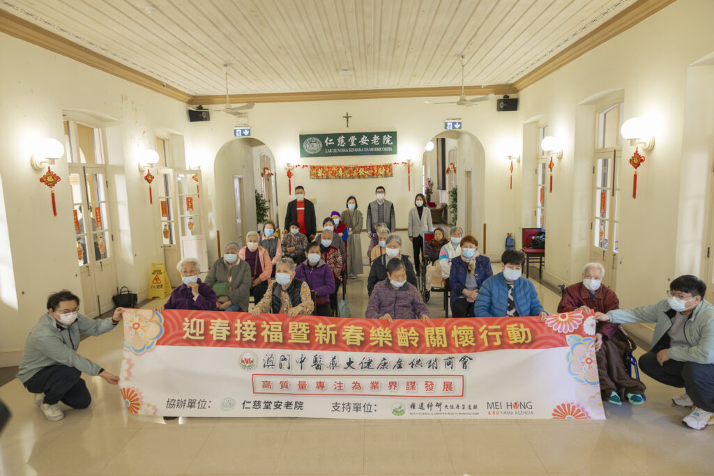 【本報訊】農曆新年臨近,澳門中醫藥大健康產供銷商會昨日到仁慈堂安老院舉辦新春送暖活動,向長者們致送精心準備的年糕,並特別安排了健康操環節,旨在傳遞溫暖與祝福的同時,關懷長者的身心健康,弘揚中華民族尊老愛幼的傳統美德。