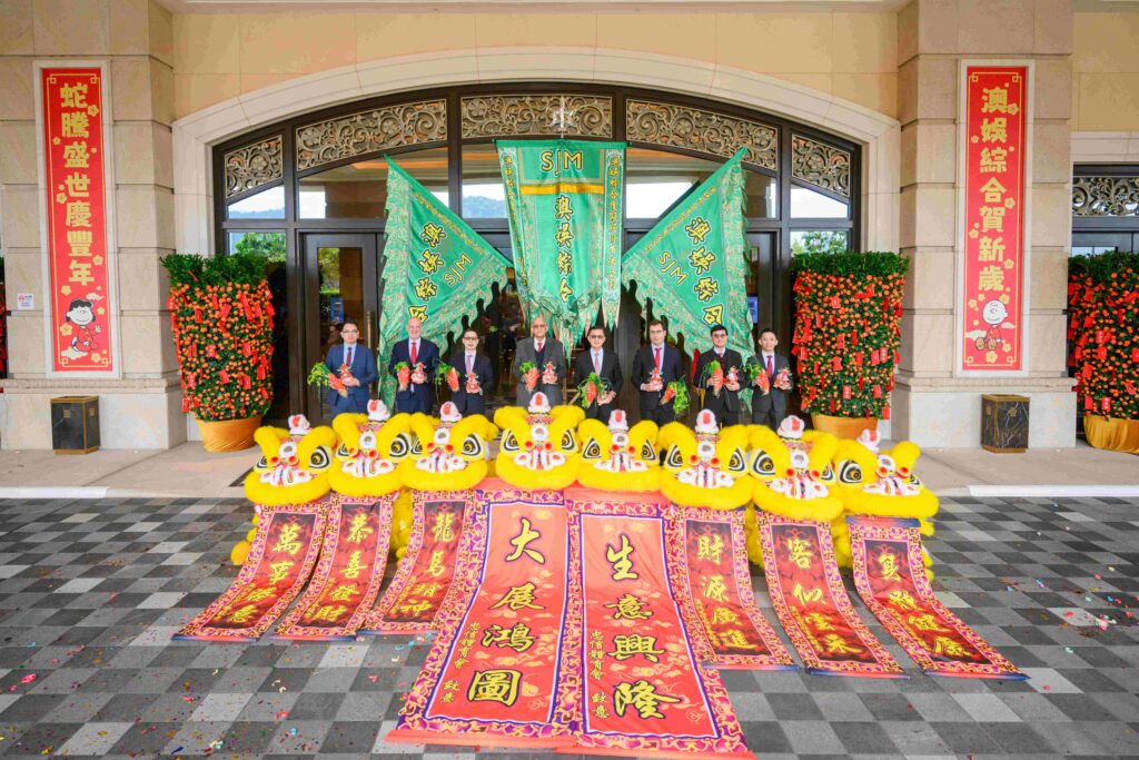 澳娛綜合秘書長官樂怡大律師、首席營運總監卓河祓、首席企業事務總監沈銘義、副秘書長馬德龍大律師,聯同一眾管理層主持醒獅點睛儀式,活力滿滿的醒獅隊伍在鑼鼓聲和爆竹聲中巡遊上葡京,沿途向市民、旅客及商戶送上新春祝福。
