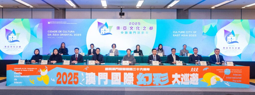 「東亞文化之都‧中國澳門」活動年暨慶祝澳門回歸祖國二十六周年「2025澳門國際幻彩大巡遊」新聞發佈會於昨日在澳門文化中心舉行。