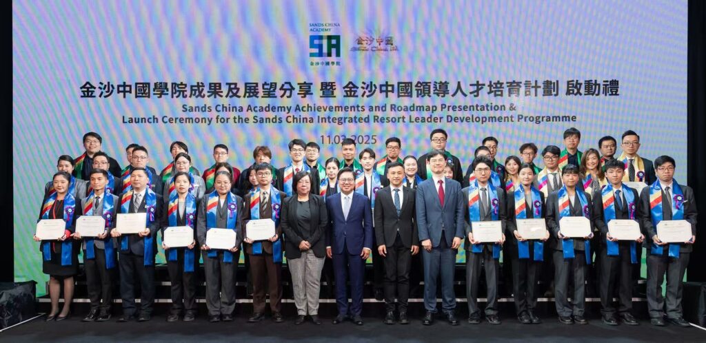 【本報訊】金沙中國有限公司昨天在澳門倫敦人舉辦「金沙中國學院成果及展望分享」,透過實例及影片分享、向學員頒授結業證書及卓越表現嘉許獎等不同方式回顧公司去年在青年人才培育方面的卓越成果;同場啟動全新的「金沙中國領導人才培育計劃」,以加強綜合休閒旅遊業管理人才的培育。