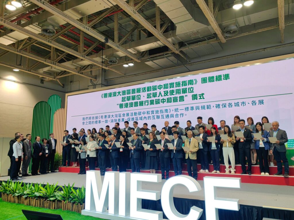 【本報訊】由澳門展貿協會與澳門低碳發展協會聯合主辦之「團體標準《粵港澳大灣區會展碳中和實施指南》發佈會」暨「全球會展產業淨零碳活動(NZCE))中國工作組第二次會議」昨日下午在2025MIECF展會舉行,助力推動會展產業淨零碳活動工作,希望透過系列活動讓綠色會展從理念倡議逐步落地成為行業共識,促進區域可持續發展,並助力全球會展業邁向淨零碳目標。