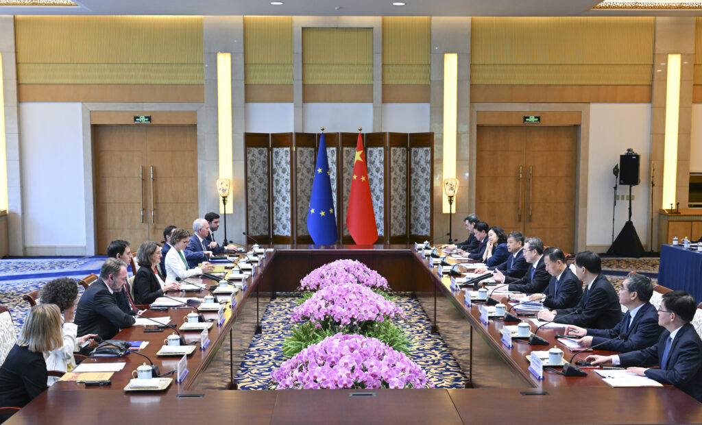 【中新社北京7月14日電】中共中央政治局常委、國務院副總理丁薛祥14日下午在北京同歐盟委員會執行副主席裏貝拉舉行第六次中歐環境與氣候高層對話。