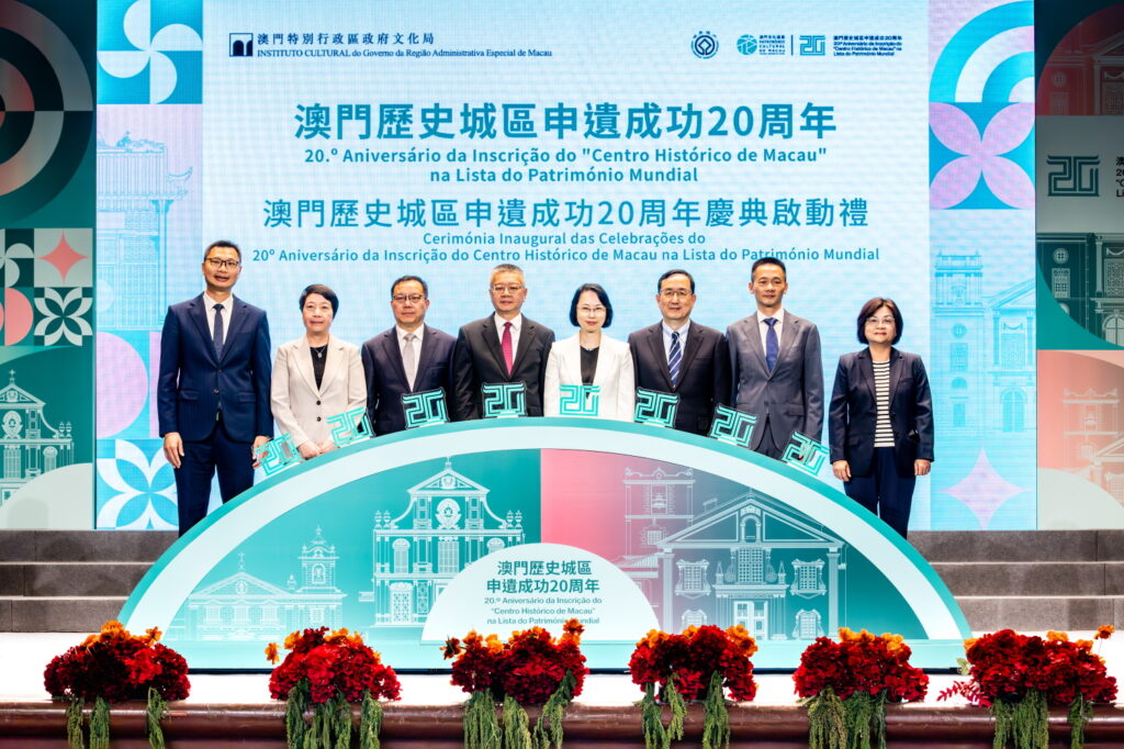 【本報訊】由文化局主辦、市政署和郵電局協辦的「澳門歷史城區申遺成功20周年慶典啟動禮」於昨日在崗頂劇院舉行,揭開系列精彩慶祝活動序幕,與全城歡慶世遺華章二十載。