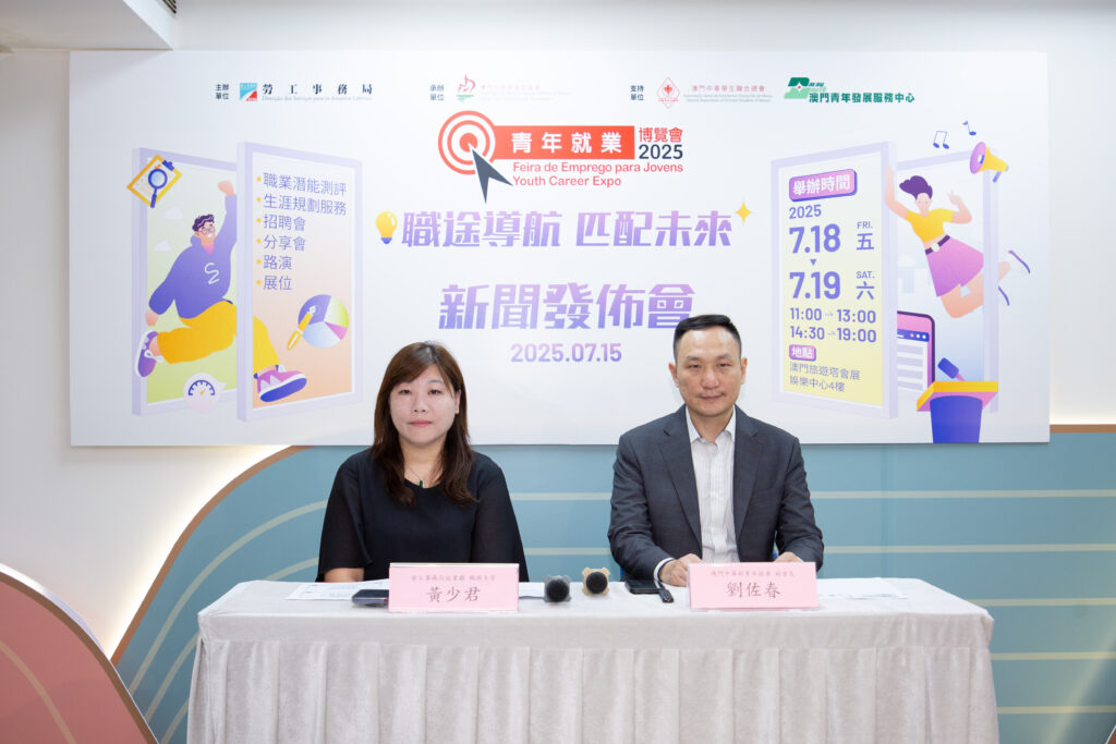 【本報訊】由勞工事務局主辦、澳門中華新青年協會承辦,澳門中華學生聯合總會及澳門青年發展服務中心支持的「青年就業博覽會2025」,將於7月18日及19日假澳門旅遊塔會展娛樂中心4樓舉行。新聞發佈會已於昨日順利舉行,會上介紹一連兩天的活動內容:招聘會、線上職業潛能測評、生涯規劃諮詢服務、講座和路演,透過一連串活動助力求職青年「職途導航、匹配未來」。