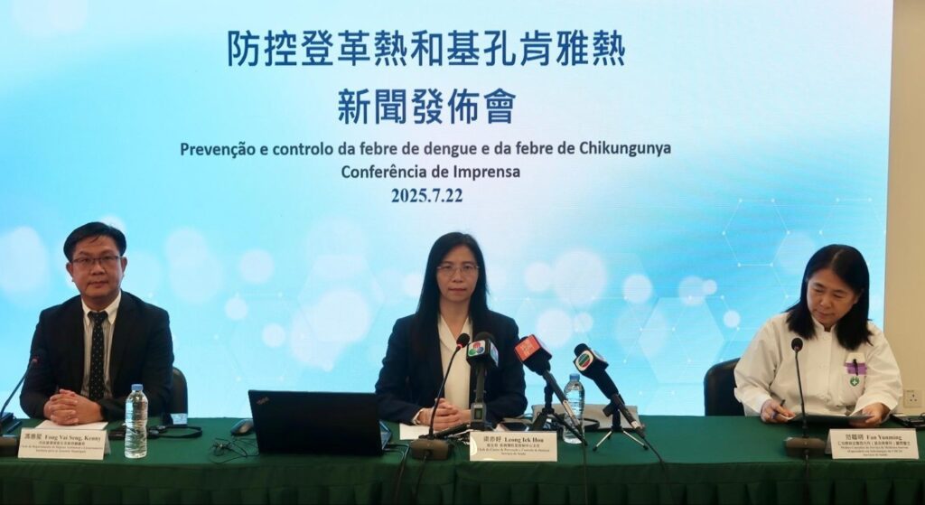 【本報訊】本澳於7月18日錄得近年首例輸入性基孔肯雅熱病例,衛生局與巿政署昨日聯合舉行防控登革熱和基孔肯雅熱新聞發佈會,介紹近期基孔肯雅熱和登革熱流行情況、預防措施以及特區政府的應對工作。