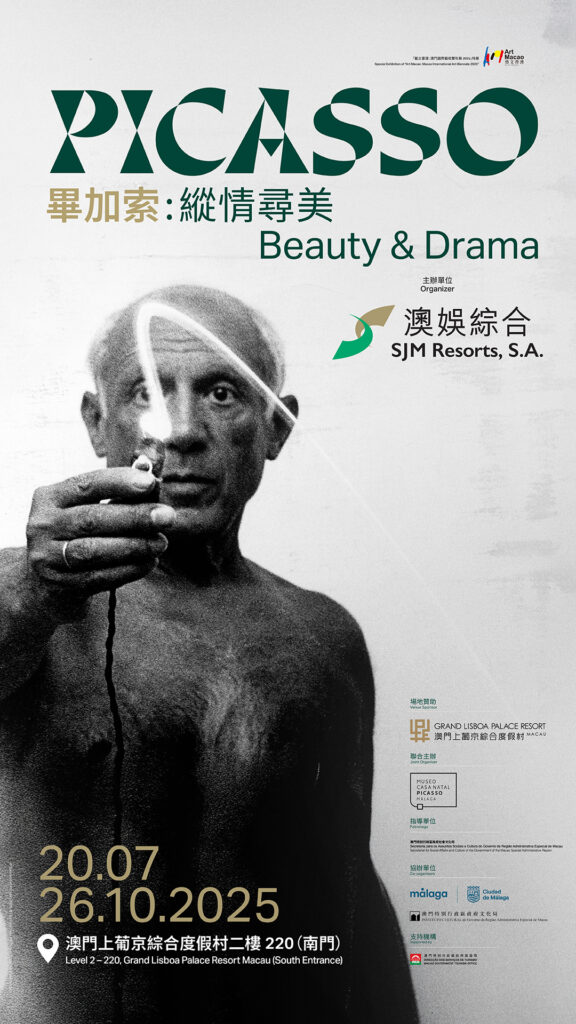 「畢加索:縱情尋美」全球首展完美呼應「藝文薈澳2025」主題「嗨,你幹甚麼來了?」。展覽透過展示畢加索於不同創作階段的風格演變,以及他於不同藝術媒介上的不斷探索與突破,引領觀眾深入認識其情感世界,以及對故鄉安達盧西亞(Andalusia)的深厚連繫。展覽重點展品包括:畢加索為伴侶創作的《身穿條紋緊身胸衣的人物》;描繪其五歲女兒的《帕洛瑪和她的娃娃,黑色背景》;以及畢加索陶瓷作品的典範之作《騎士與馬》;以及重現藝術家工作室的《拾起畫筆的畫家及戴頭巾的模特》。