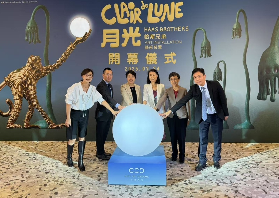 【本報訊】由國際知名雙胞胎藝術家哈斯兄弟(The Haas Brothers)傾力打造的《月光》(Clair de Lune)特展於新濠天地正式揭幕。作為「藝文薈澳:澳門國際藝術雙年展2025」特展,《月光》以光的流動為隱喻,通過藝術裝置、情緒空間與擬人化角色構建沉浸式觀展體驗,標誌著新濠天地在藝術與跨界探索上的又一重要篇章。