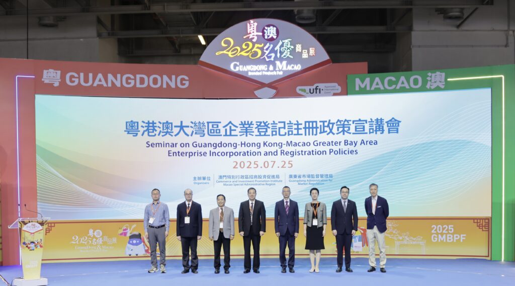 【本報訊】為協助本澳企業深入瞭解粵港澳大灣區企業登記註冊相關政策及流程,更好把握大灣區發展機遇,由澳門特別行政區招商投資促進局聯合廣東省市場監督管理局主辦的「粵港澳大灣區企業登記註冊政策宣講會」,昨(25)日在「2025粵澳名優商品展」期間舉行。活動吸引近80名澳門企業代表參與。當中有橫琴粵澳深度合作區澳資企業分享使用澳門招商局服務,及透過相關便利措施成功落戶合作區的經驗。