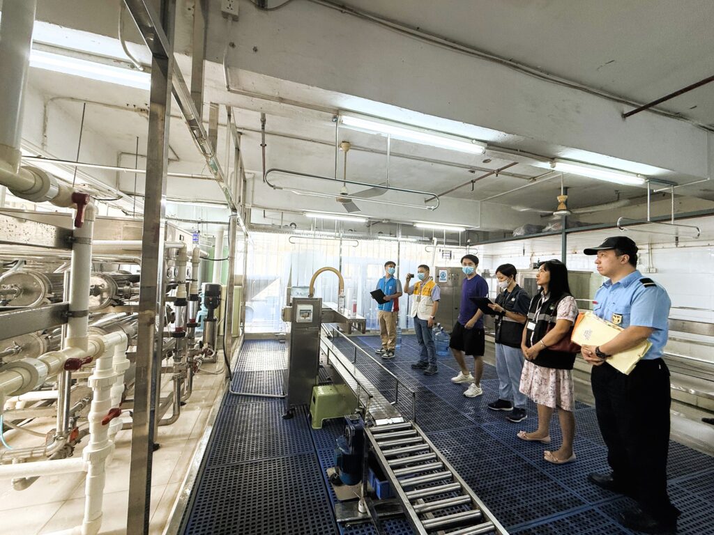 繼本月初跨部門對全澳八家桶裝飲用水生產場所進行排查後,由經濟及科技發展局、勞工事務局、消防局、市政署和衛生局組成的工業場所檢查委員會日前對全澳桶裝飲用水生產場所開展聯合巡查,檢查場所建築結構佈局、食品安全、環境衛生、防火及職業安全等,尤其對整體生產流程的機電設備、配水系統,消殺工藝的程序和記錄、設施設備的維護與保養等潛在風險控制點進行全面排查。委員會強調業界須嚴格落實各項生產質量要求,確保產品符合衛生及食用安全,保障消費者權益。