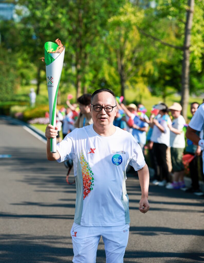 【本報訊】第12屆世界運動會火炬傳遞活動於四川舉行。獲澳門特別行政區政府推薦,澳門大學校長宋永華代表澳門擔任世運會的火炬手,接力傳遞世運精神,展現澳門在世界體育文化交流中的擔當,以及對世運會「文化、友誼、團結」理念的踐行。