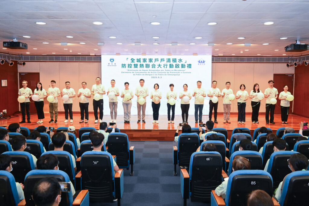【本報訊】為應對登革熱與基孔肯雅熱(「雙熱」)疫情風險,「全城家家戶戶清積水」防控雙熱聯合大行動啟動禮於昨日下午黑沙環衛生中心3樓會議廳舉行,社會文化司司長柯嵐,中聯辦宣傳文化部部長萬速成,多個政府部門及社團機構代表出席。衛生局局長羅奕龍表示,希望藉著今次行動,進一步透過跨部門合作,聯動社團機構的力量,動員全澳居民進行「家家戶戶清積水」聯合大行動。