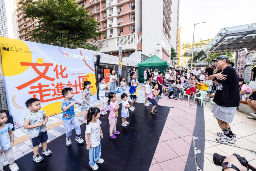 「文化走進社區」以「文化多點,幸福多點」為核心理念,透過互動性強、貼近居民生活的活動形式,在全澳多個社區地點舉辦快閃活動,讓居民在日常生活中享受藝術和文化之美。首周活動覆蓋黑沙環、祐漢、望廈、高士德、新橋及石排灣等社區點,設有四大主題:「世遺多點」以親子手偶劇場帶領居民穿梭澳門歷史城區,共慶申遺成功20周年;「葡韻多點」相約居民齊跳葡萄牙土風舞,感受澳門中葡文化交融底蘊;「音樂多點」以運動結合音樂體驗,為即將舉行的全國運動會奏響序章;「童藝多點」由澳門國際兒童藝術節小精靈「米卡」舞動街頭,激發兒童演藝潛能,另有兩場戶外電影會締造難忘的親子時光,讓家長和孩子共享銀幕奇幻旅程。