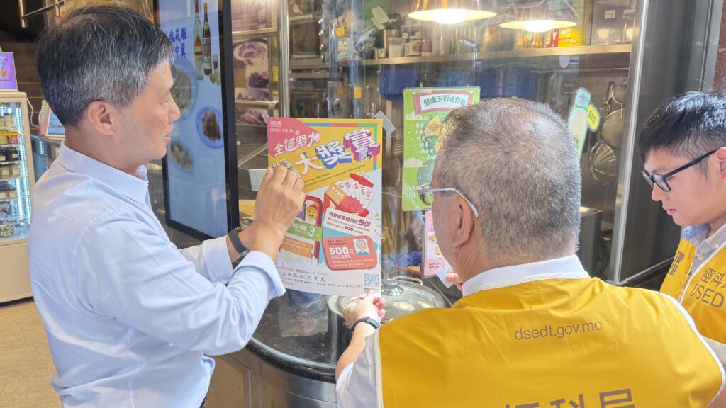 經濟及科技發展局表示,為擴大活動宣傳力度,讓活動資訊深入本澳社區,該局與澳門中華總商會正全面展開系列宣傳工作。近日,雙方落區走訪社區商戶,現場派發宣傳海報,並詳細講解活動內容、參與條件及核銷細則,推動社區商戶積極響應,主動配合特區政府促消費措施;同時鼓勵商戶同步推出疊加優惠,共同激發社區消費潛力,助力社區經濟發展。