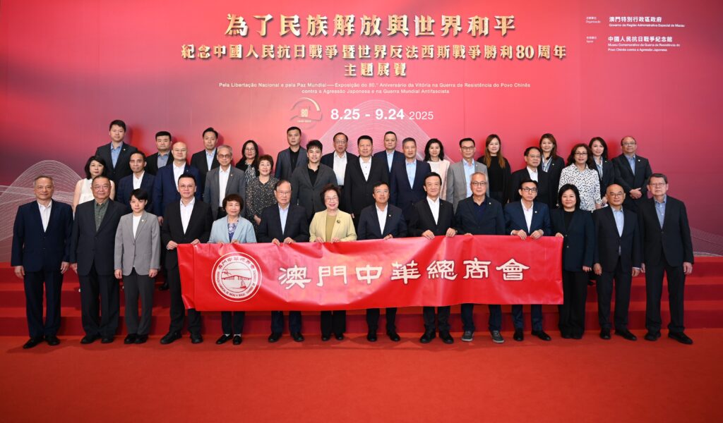 【本報訊】由澳門特別行政區政府主辦、中國人民抗日戰爭紀念館支持舉辦的「為了民族解放與世界和平——紀念中國人民抗日戰爭暨世界反法西斯戰爭勝利八十周年」主題展覽正展出,澳門中華總商會於昨(27)日下午三時半,由理事長馬志毅、副會長賀定一及劉藝良率領一行四十人前往參觀,共同回顧歷史、緬懷先烈,深化對抗戰歷史的認識。