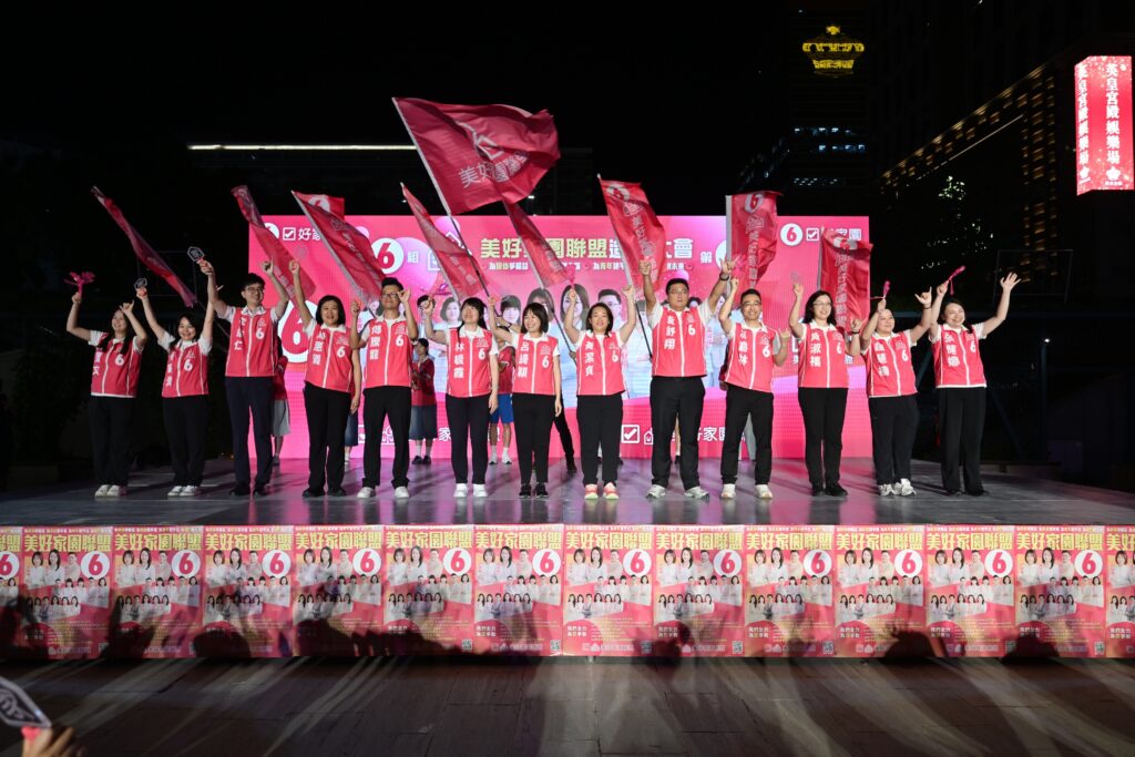 「美好家園聯盟」14位候選人︰黃潔貞、呂綺穎、黃舒翔、林毓霞、阮舒淇、傅騰龍、馮嘉林、周惠儀、黃淑禧、李結仁、鍾慧楠、黃美清、張健娜、崔寶文分別圍繞青年「五業」闡述政綱內容,為青年發展搭台架梯。