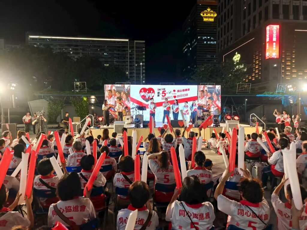 【本報訊】第八屆立法會選舉直選第五組同心協進會昨日在友誼廣場舉行宣傳造勢大會,現場吸引不少支持者,他們身穿宣傳衣服,手持打氣棒,高喊競選口號,為候選人打氣,場面熱鬧。