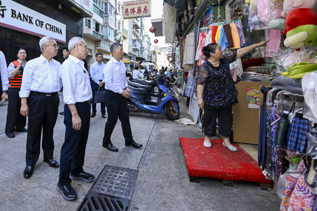 行政長官在保安司司長、聯合行動指揮官黃少澤,員警總局局長梁文昌及司法警察局局長薛仲明陪同下,視察十月初五街一帶,檢視低窪地區的防浸部署及準備工作,瞭解目前「颱風期間風暴潮低窪地區疏散撤離計劃」的排查及宣傳工作,以及執行計劃時的具體安排。