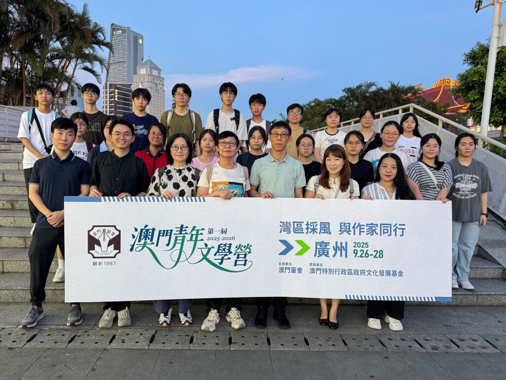 【本報訊】由澳門澳門筆會主辦的第一屆澳門青年文學營一行三十三人,於昨日(九月二十六日)黃昏六時三十分啟程前往廣州,進行一連三日「灣區採風與作家同行」廣州站活動,並獲廣東作家協會邀請,期間參加在當地舉行的第五屆「粵港澳大灣區文學周」的一系列節目。