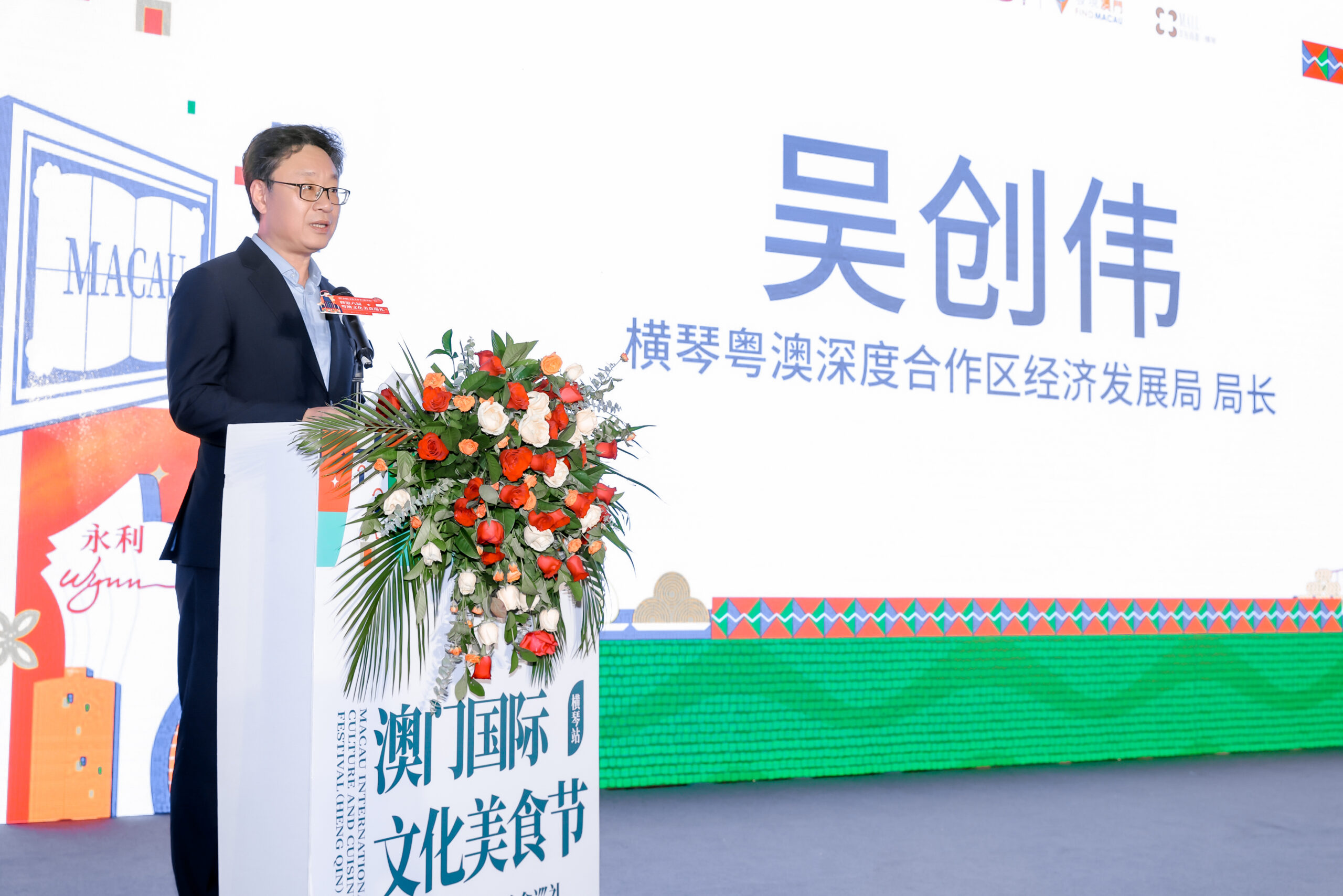 開幕式於9月30日晚在橫琴華髮商都舉行。橫琴粵澳深度合作區經濟發展局局長吳創偉表示,此次在橫琴舉辦澳門國際文化美食節(橫琴站),既是深化粵港澳大灣區合作、弘揚澳門特色飲食文化、共建「世界美食之都」的重要舉措。美食節不僅是展示特色產業的平臺,更是促進消費升級、帶動文旅融合的重要契機。通過美食與文化的聯動,可以有效激發市場活力,帶動餐飲、商貿、文旅等相關產業鏈條的協同發展,形成新的經濟增長點,為橫琴和澳門的經濟適度多元發展注入新動力,並將進一步提升橫琴居民的生活品質,豐富精神文化生活,增強幸福感和歸屬感。一個地區的發展,不僅需要現代化城市建設,更需要承載人間煙火的溫暖與文化積澱。從文化角度來看,希望藉美食節這一平臺,展示橫琴開放包容的文化特質,推動粵澳文化交流,深化兩地人民的相互理解與情誼,讓橫琴文化走向更廣闊舞臺。