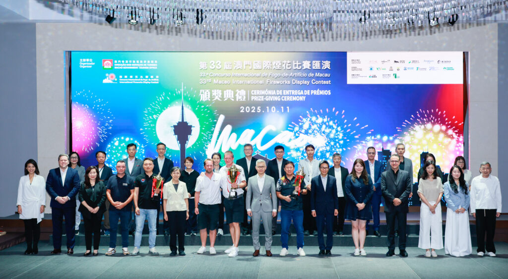 【本報訊】旅遊局主辦的第33屆澳門國際煙花比賽匯演於11日(前日)晚上圓滿落幕並舉行頒獎典禮。來自世界各地的10間煙花公司施展渾身解數,在橫跨9月和10月的5個煙花夜爭妍綻放。經過一輪角逐,最終由來自英國的Pyrotex Fireworx煙花公司奪得冠軍寶座,來自菲律賓的Platinum Fireworks煙花公司及中國的東信煙花公司分別奪得亞軍及季軍。