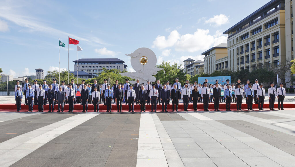 【本報訊】第三屆粵港澳大灣區警察運動交流會開幕式昨日假澳門大學蓮花廣場舉行。保安司司長黃少澤,廣東省副省長、公安廳廳長劉國周,香港警務處處長周一鳴,澳門候任保安司司長、檢察院檢察長陳子勁,澳門中聯辦警聯部部長王前進等出席。