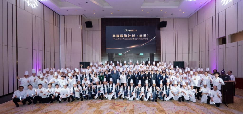 新濠一直致力透過提供多元化的學習機會,提升同事的職業技能及事業發展,藉以培育本地人才及推動「全人發展」。二零二一年,新濠在勞工事務局及澳門旅遊大學的鼎力支持下,攜手推出全澳首創的「基礎躍進計劃(廚藝)」。該計劃旨在發掘及培育本地廚藝人才,同時鞏固澳門作為聯合國教科文組織「創意美食之都」的地位。「基礎躍進計劃(廚藝)」透過全面的在職培訓、跨部門體驗,以及與特區政府及本地大學合辦的正式和非正式培訓,為參與者提供寶貴的技能發展機會,包括轉職、實戰經驗、管理培訓、導師指導及職業規劃。