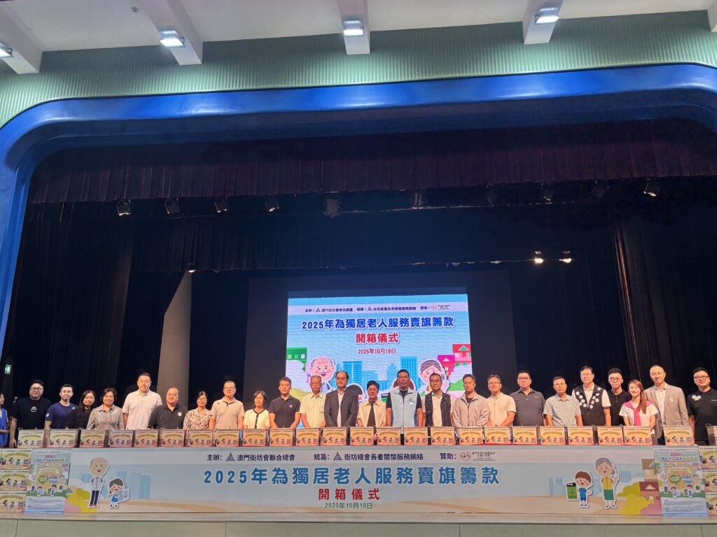 籌款開箱儀式昨日下午在街總社服大樓6樓舉行。街總副會長陳曉平致詞表示,該會開展關懷獨居長者服務已有31年,每年為獨居老人賣旗籌款的活動都得到社會各界及市民的熱情參與和支持。