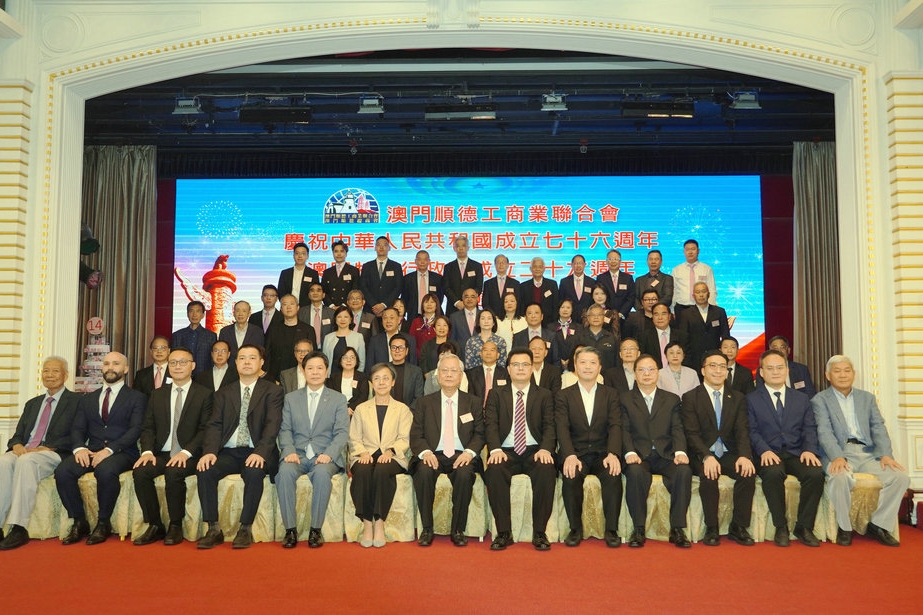 【本報訊】澳門順德工商業聯合會昨晚七時假萬豪軒舉行「慶祝中華人民共和國成立七十六周年、澳門特別行政區成立二十六周年、商會成立十四周年」聯歡晚會,筵開廿席,氣氛熱鬧。