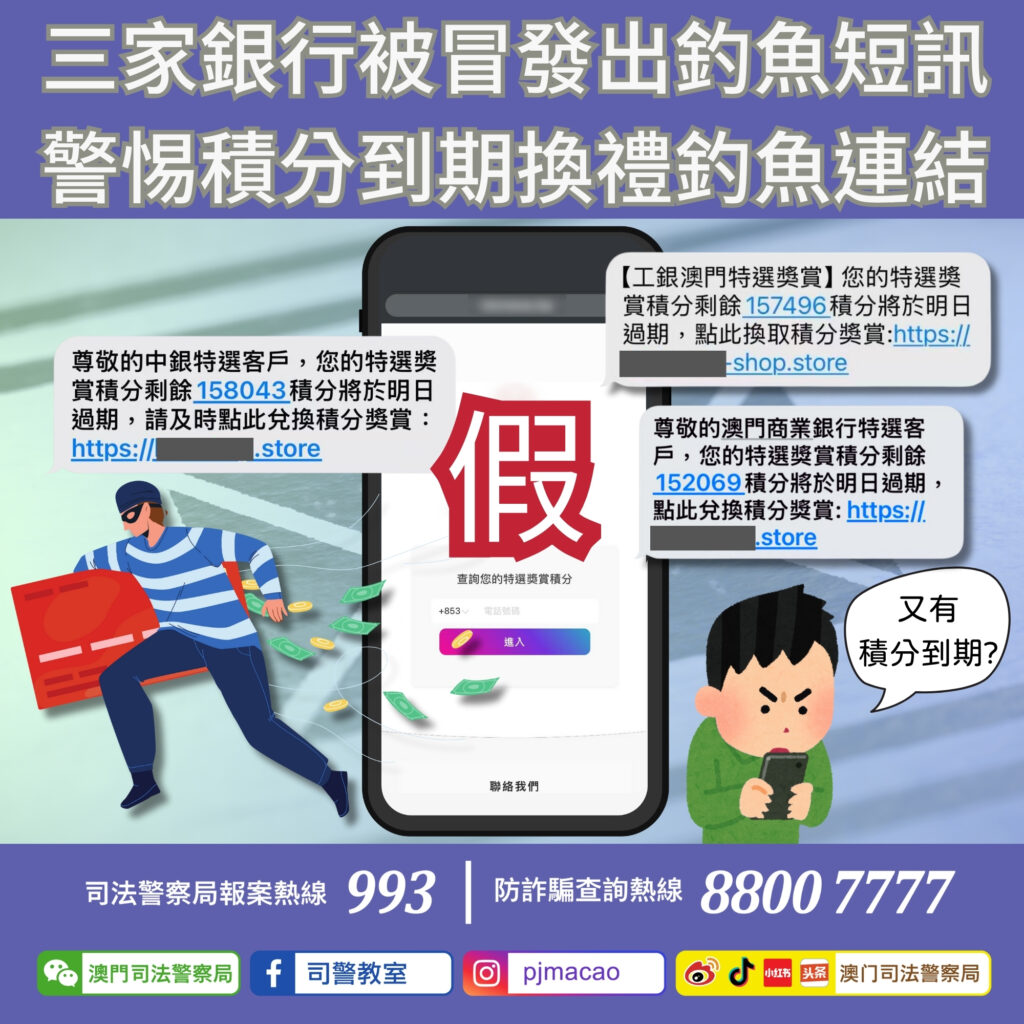 司警稱,釣魚短訊內容以「特選獎賞積分明日過期」為由,誘使市民點擊短訊內附帶的釣魚連結。由於騙徒的釣魚短訊有可能會混入市民與銀行的真實短訊對話框內,市民務必提高警覺。