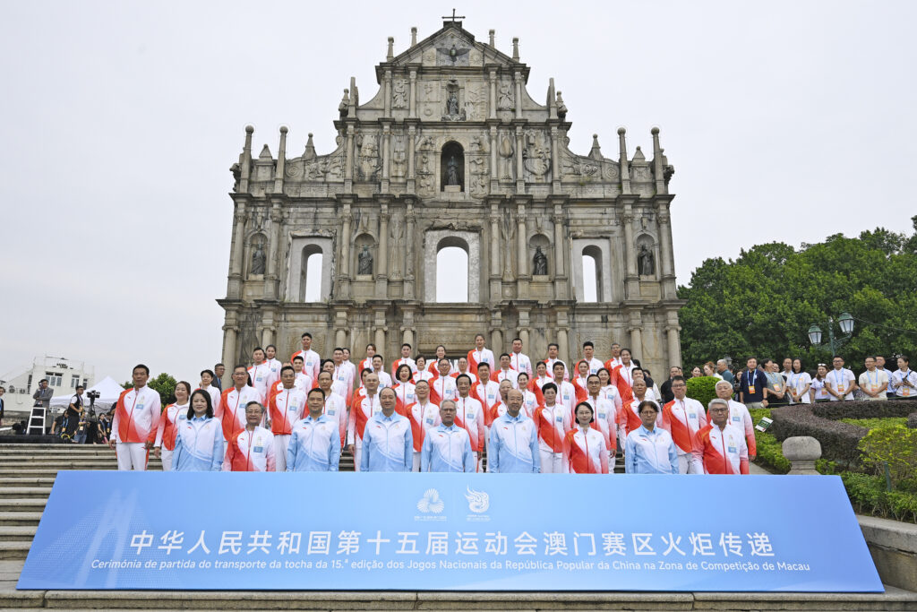 岑浩輝在儀式上致辭時表示,在全運聖火的映照下,共同見證第十五屆全國運動會澳門賽區火炬傳遞的圓滿完成。全運聖火象徵着光明與希望,火炬傳遞,是精神的傳遞,更是力量的凝聚。聖火穿越澳門的大街小巷,由50位火炬手接力相傳,每一步都展現了澳門奮發同行的城市風采,每一次交接都傳承着團結拼搏的體育精神。此刻,聖火在大三巴牌坊前匯聚,共同點亮了「灣區同心全運同行」的璀璨之光。