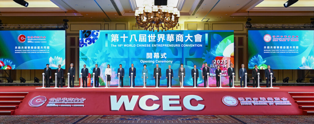 昨日早上十時,開幕式及主旨論壇假澳門威尼斯人宴會廳盛大舉行。全國政協副主席何厚鏵、咸輝,澳門特區行政長官岑浩輝,澳門中聯辦主任鄭新聰,國務院僑務辦公室主任陳旭,中國僑聯主席王靈桂,全國政協常委、港澳台僑委員會主任劉賜貴,全國人大常委會委員、全國人大華僑委副主任委員顏珂,外交公署特派員劉顯法,全國工商聯專職副主席羅來君,中國僑聯副主席程紅,中國貿促會副會長陳建安,原中國科學院院長、「一帶一路」國際科學組織聯盟創始主席白春禮,澳門立法會主席張永春,經濟財政司司長戴建業,香港中華總商會會長蔡冠深,新加坡中華總商會會長高泉慶,泰國中華總商會主席林楚欽,澳門中華總商會會長崔世昌擔任主禮嘉賓。現場匯聚來自全球華商及內地、澳門工商界人士共約四千人,場面盛大,氣氛熱烈。
