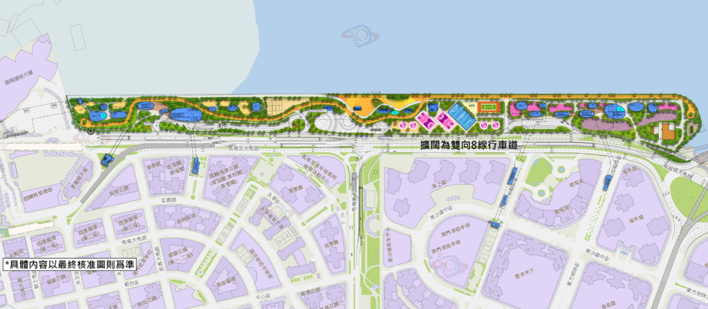 公共建設局稱,為更好地聆聽社會意見,以對設計方案作出優化完善,公共建設局早前舉辦了多場專題講解會,分別向市政諮詢委員會、社區服務諮詢委員會、交通諮詢委員會、城市規劃委員會以及該區坊會代表介紹方案並收集意見。會上大多數意見均贊同區內應建設多元的海濱休憩空間、解決沿岸污染,以及擴闊道路的設計方案,希望施工前應與相關部門做好協調工作及廣泛宣傳,制訂臨時交通方案減低對周邊的影響。預計2026年完成設計後分階段啟動工程招標,目標與輕軌東線於2029年通車後同步投入使用。