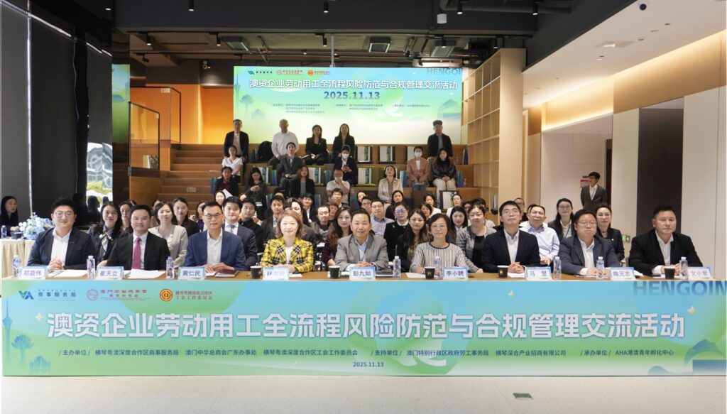 【本報訊】為助力橫琴合作區澳資企業搭建勞動用工法律風險防控體系,築牢企業可持續發展用工根基,橫琴合作區商事服務局、澳門中華總商會廣東辦事處、橫琴合作區工會工作委員會於昨日順利合辦「澳資企業勞動用工全流程風險防范與合規管理交流活動」。
